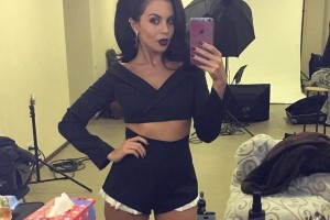 Настя сделала селфи из гримерки, на котором предстала в откровенном наряде. Певица одета в черный костюм, который состоял из коротких шорт, напоминающих трусы, и топа с рукавами. Так же у Насти не было привычных кудряшек. Свой образ звезда дополнила вечерним макияжем с темной помадой и висячими серьгами.