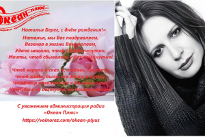 Радио «Океан Плюс» с гордостью поздравляет Наталью Берег с днем рождения! Мы желаем ей крепкого здоровья, творческого вдохновения, новых музыкальных шедевров и, конечно же, любви и признания поклонников. Пусть её голос дарит людям радость и светлую музыку.
