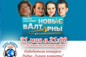 31 мая в 21:00 на волнах Радио "Голоса планеты" зазвучат новые песни Группы «НОВЫЕ ВАЛТОРНЫ» («NOVYE VALTORNY»), песня которой "Лето – летал!" (муз. Алексей Фомин, сл. Алексей Фомин, Любовь Лерокс) по итогам Всероссийского отборочного тура Радио "Голоса планеты" вошла в десятку лучших из 500 присланных из разных городов страны в нашу редакцию за последний месяц.
