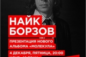4 и 5 декабря в клубе «16 тонн» Найк Борзов представит этно-техно альбом «Молекула», релиз которого состоится 1 декабря 2015 года. Это своеобразный творческий эксперимент, соединивший в себе первобытную мощь кахона и бонгов в переплетении с гитарами, философской лирикой и узнаваемым с первых нот гипнотизирующим голосом Найка.
