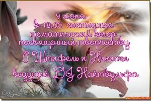9 июня в 18.00 состоится тематический вечер от дж Найтвульфа, посвященный творчеству Ренаты Штифель и группы Никита