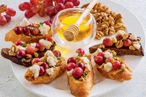 Закуска с козьим сыром, виноградом и грецкими орехами